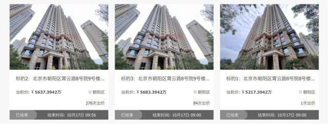 根据京东资产平台信息,霄云路8号这三套房均为455.27平方米,起拍价均为5217万元,分别是8号楼20层2单元2002室、9号楼16层2单元1602室、9号楼20层1单元2001室。